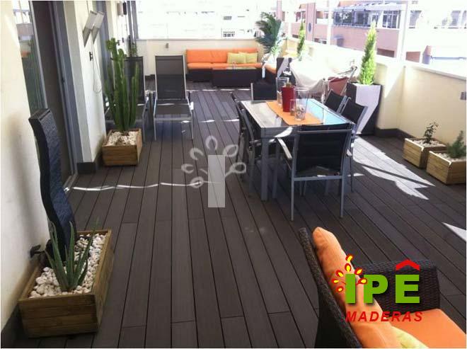 También en 2012 instalamos nuestra Tarima IPE en este ático de San Sebastián de los Reyes. Un color oscuro que juega con el diseño del resto de los materiales a los que acompaña.