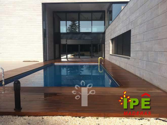 Se trata de una instalación de 120m2 de tarima de Ipe en piscina y jardín, en vivienda unifamiliar en Aravaca.